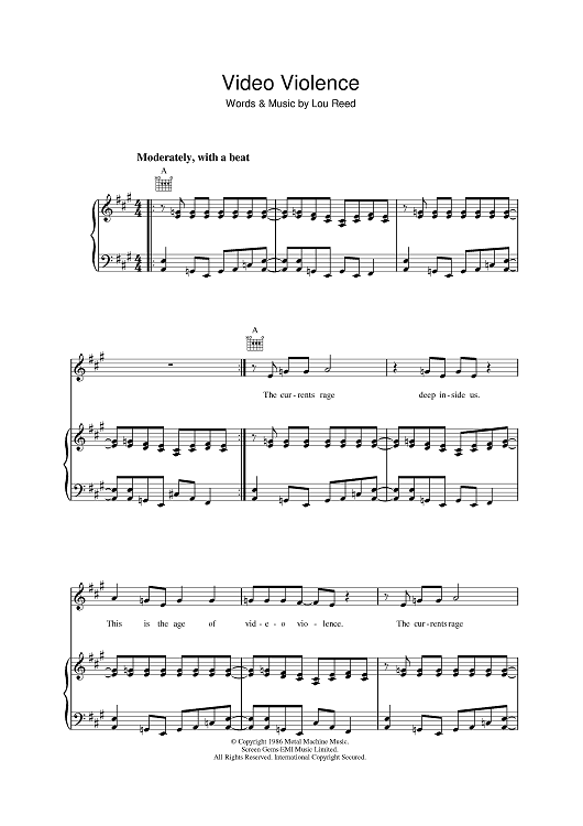 Digital Sheet Music for Video Violence by Lou Reed scored for Piano/Vocal/Chords; id:401903