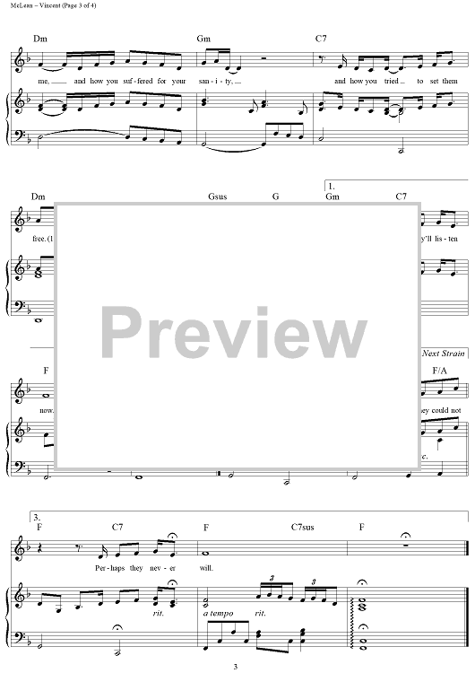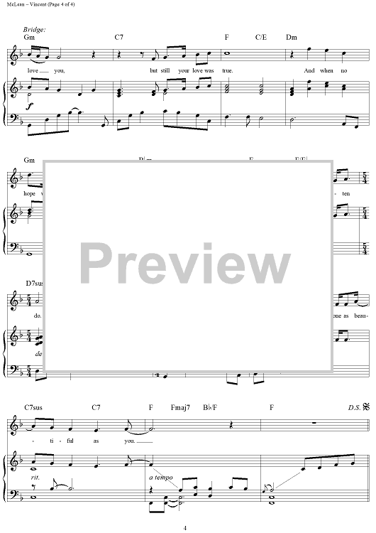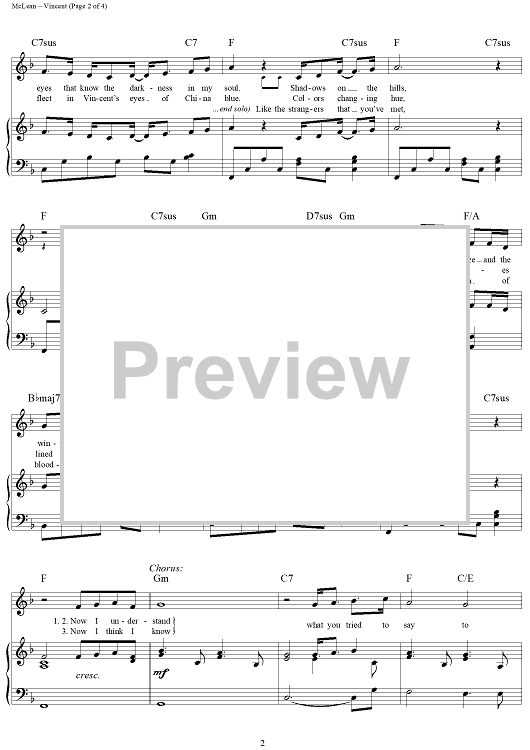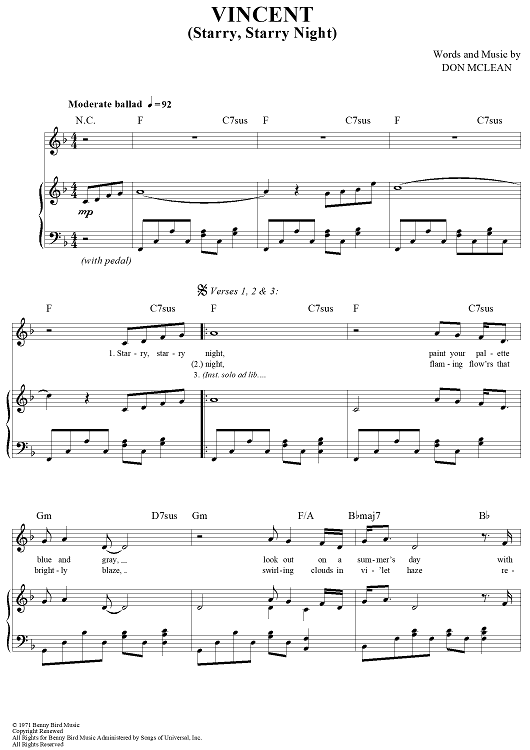Digital Sheet Music for Vincent (Starry, Starry Night) by Don McLean, Josh Groban, Guido Morra scored for Piano/Vocal/Chords; id:293547