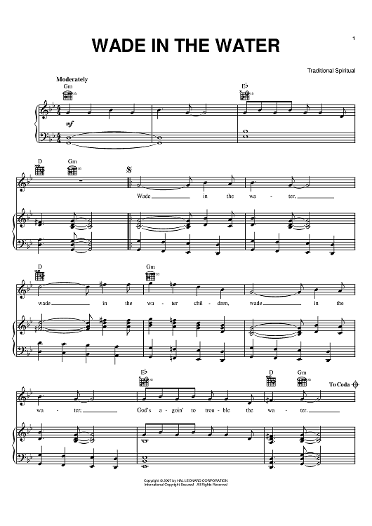 Digital Sheet Music for Wade In The Water by scored for Piano/Vocal/Chords; id:397418