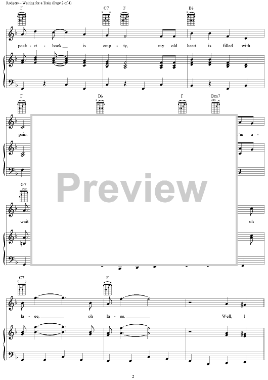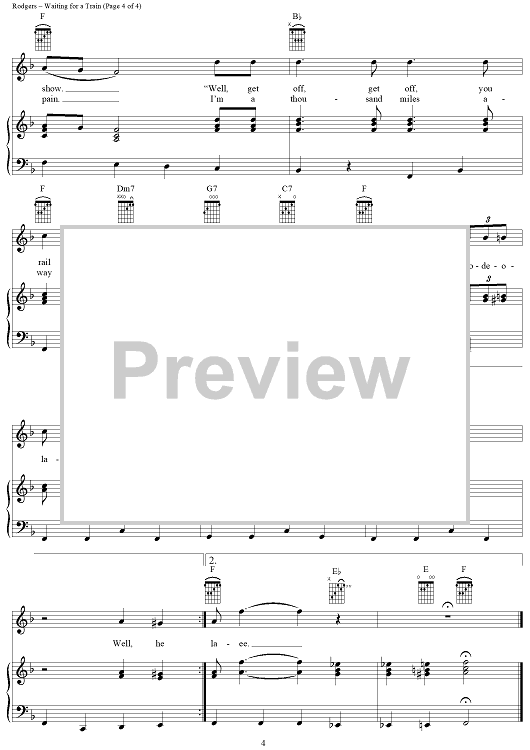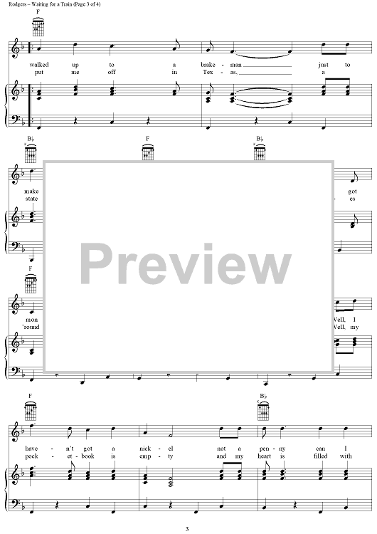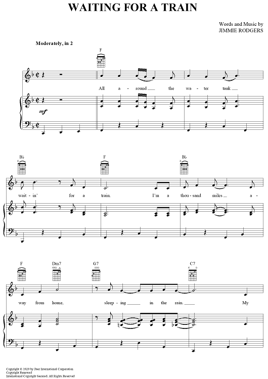 Digital Sheet Music for Waiting For A Train by Jimmie Rodgers scored for Piano/Vocal/Chords; id:367723
