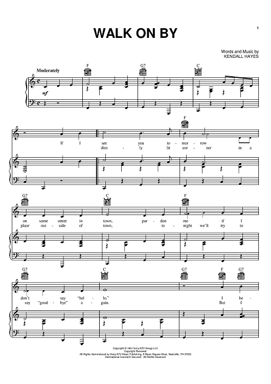Digital Sheet Music for Walk On By by Charley Pride, Asleep At The Wheel, Kendall Hays, Leroy Van Dyke scored for Piano/Vocal/Chords; id:388194