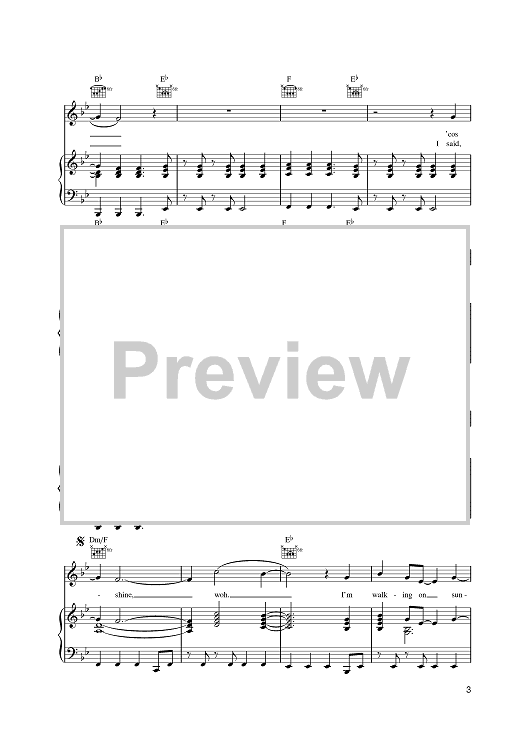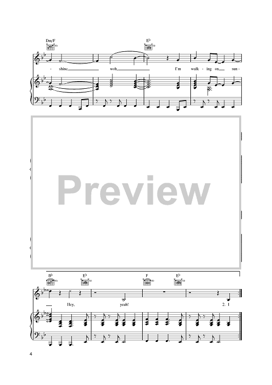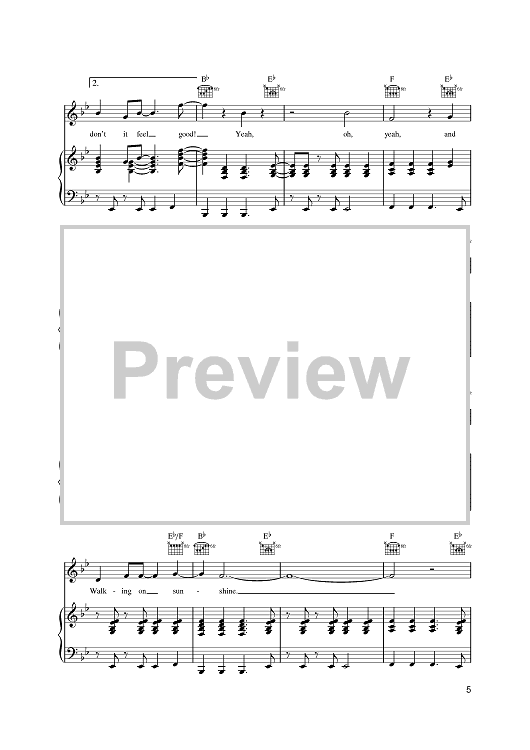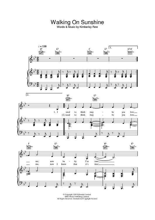 Digital Sheet Music for Walking On Sunshine by Katrina and the Waves, Kimberley Rew scored for Piano/Vocal/Chords; id:385391