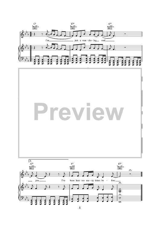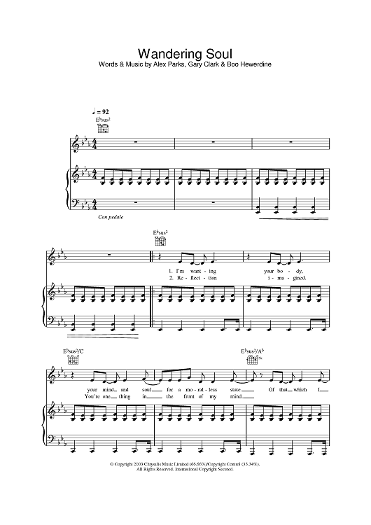 Digital Sheet Music for Wandering Soul by Alex Parks scored for Piano/Vocal/Chords; id:378344