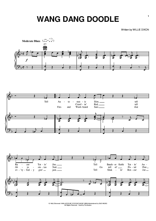 Digital Sheet Music for Wang Dang Doodle by Willie Dixon, The Pointer Sisters, Howlin' Wolf, Ko Ko Taylor scored for Piano/Vocal/Chords; id:384133