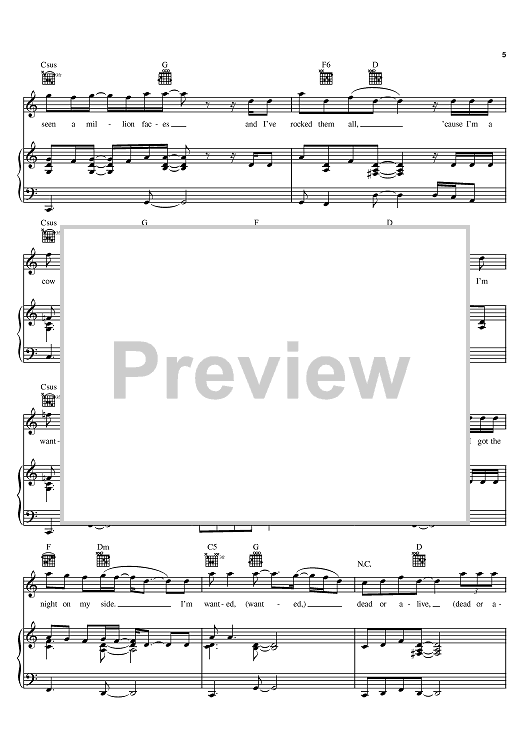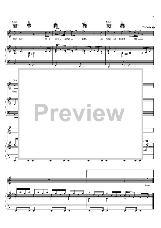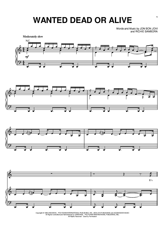Digital Sheet Music for Wanted Dead Or Alive by Bon Jovi, Richie Sambora, Jon Bon Jovi scored for Piano/Vocal/Chords; id:383021