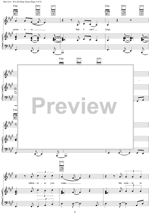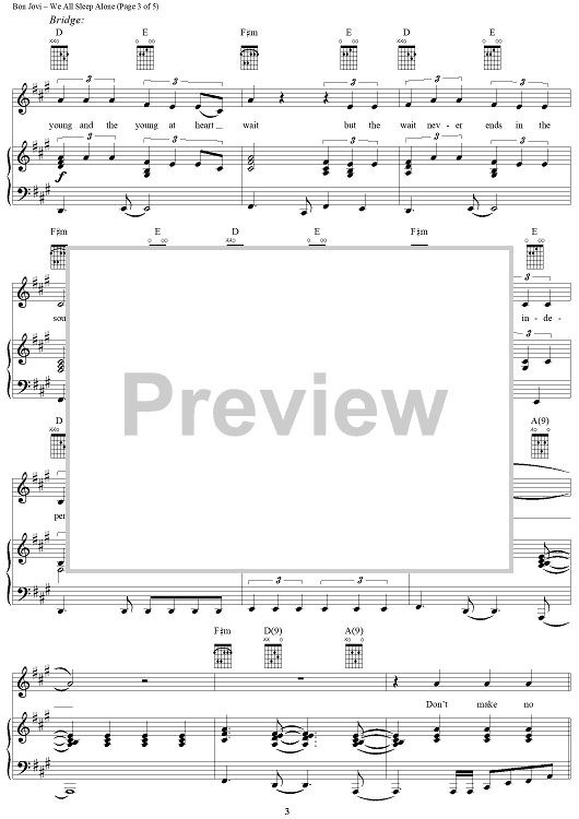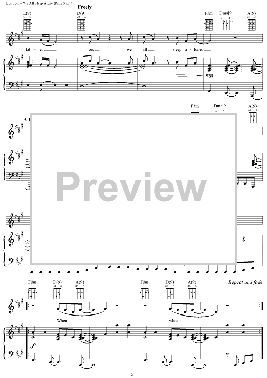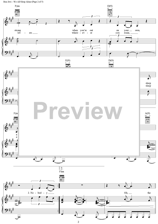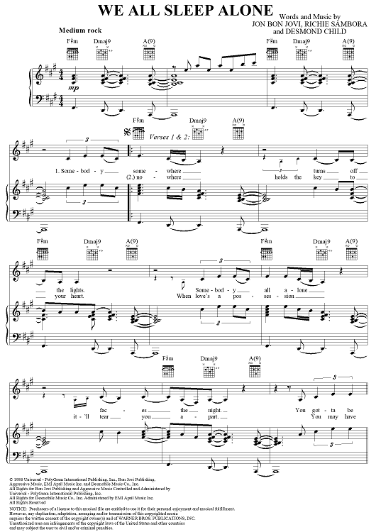 Digital Sheet Music for We All Sleep Alone by Cher, Richie Sambora, Desmond Child, Jon Bon Jovi scored for Piano/Vocal/Chords; id:286839