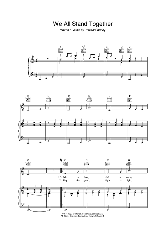 Digital Sheet Music for We All Stand Together by Paul McCartney scored for Piano/Vocal/Chords; id:394224