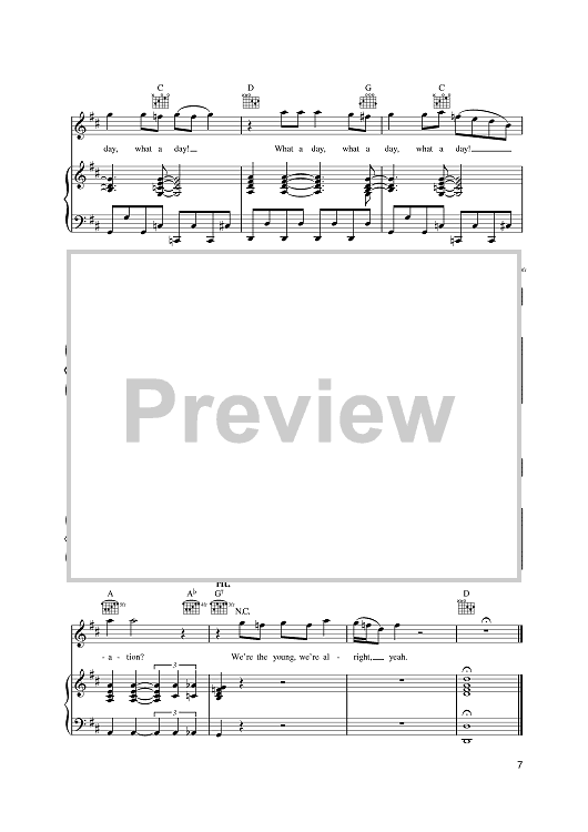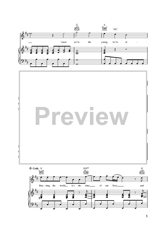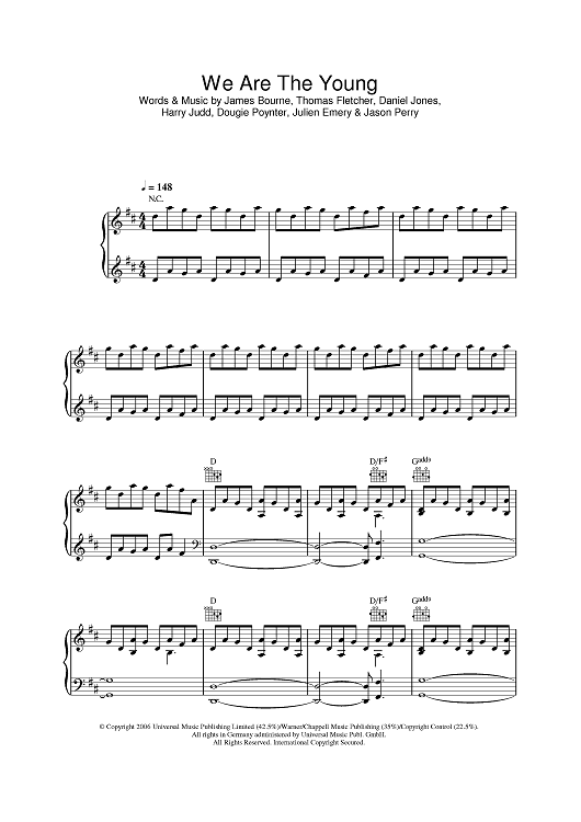 Digital Sheet Music for We Are The Young by Daniel Jones, Jason Perry, Tom Fletcher, McFly, James Bourne, Julien Emery, Harry Judd, Dougie Poynter scored for Piano/Vocal/Chords; id:395731