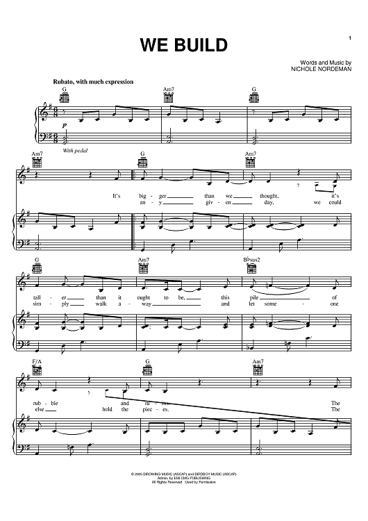 Digital Sheet Music for We Build by Nichole Nordeman scored for Piano/Vocal/Chords; id:384476