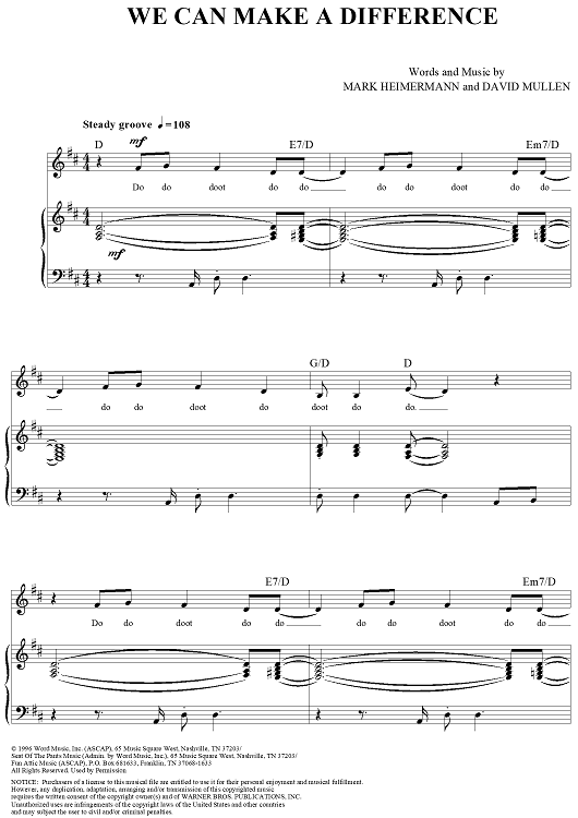 Digital Sheet Music for We Can Make a Difference by Jaci Velasquez, Mark Heimermann, David Mullen scored for Piano/Vocal/Chords; id:287125