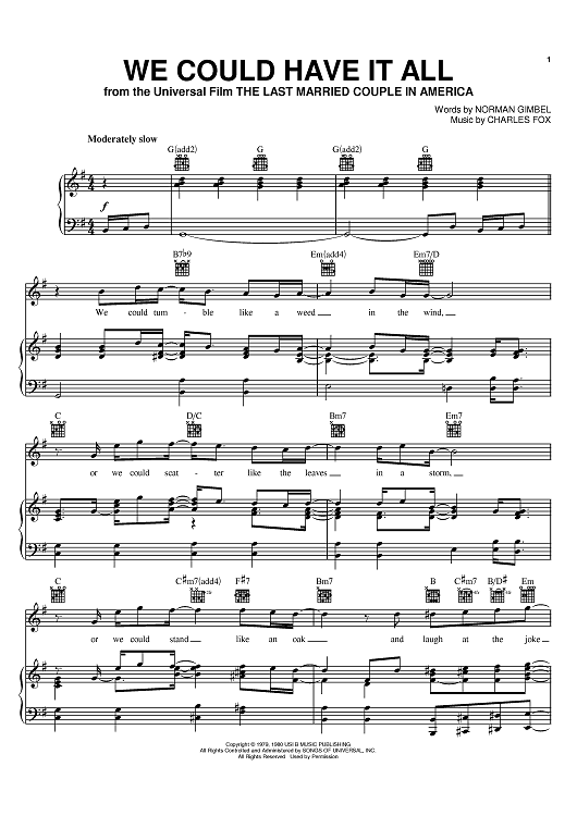 Digital Sheet Music for We Could Have It All by Norman Gimbel, Charles Fox scored for Piano/Vocal/Chords; id:374898