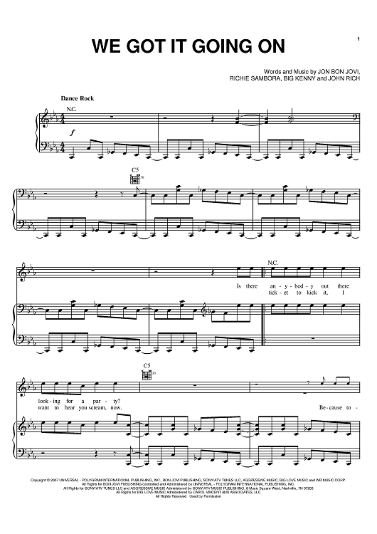 Digital Sheet Music for We Got It Going On by Bon Jovi, Richie Sambora, Jon Bon Jovi, John Rich, Big Kenny scored for Piano/Vocal/Chords; id:401754