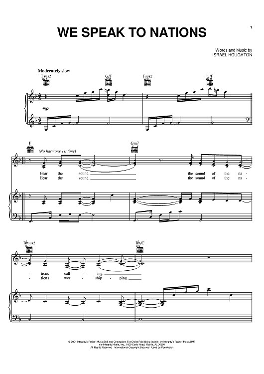 Digital Sheet Music for We Speak To Nations by Israel Houghton scored for Piano/Vocal/Chords; id:401490
