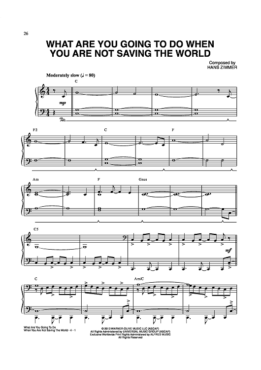 "What Are You Going To Do When You Are Not Saving The World" Sheet Music by Hans Zimmer