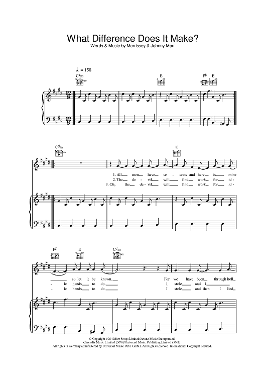 Digital Sheet Music for What Difference Does It Make? by Johnny Marr, The Smiths, Morrissey scored for Piano/Vocal/Chords; id:398766