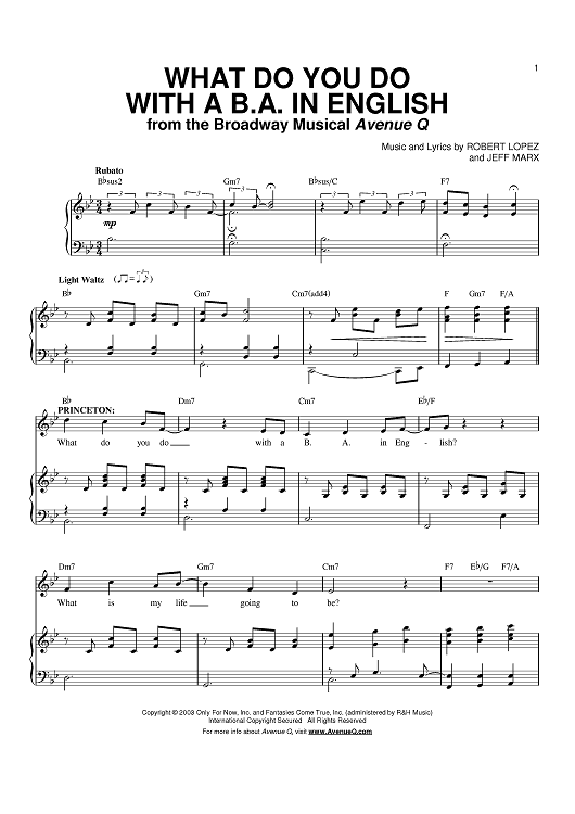 "What Do You Do With A B.A. In English" Sheet Music by Robert Lopez