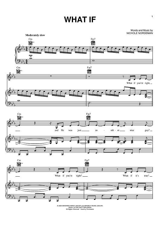 Digital Sheet Music for What If by Nichole Nordeman scored for Piano/Vocal/Chords; id:384475