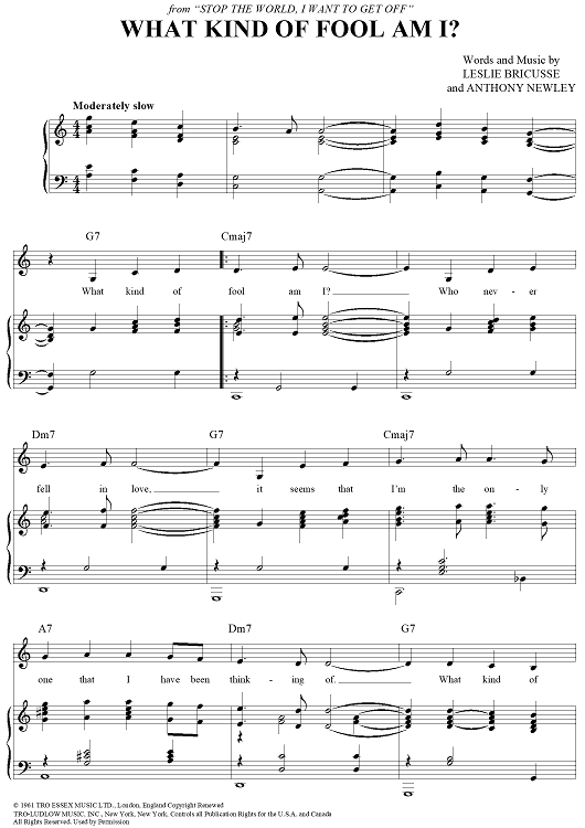 "What Kind of Fool Am I?" Sheet Music by Leslie Bricusse