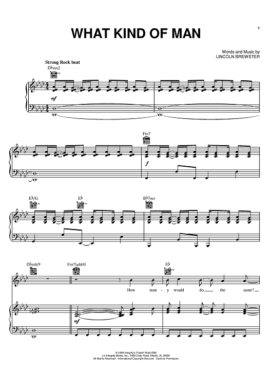 Digital Sheet Music for What Kind Of Man by Lincoln Brewster scored for Piano/Vocal/Chords; id:395147