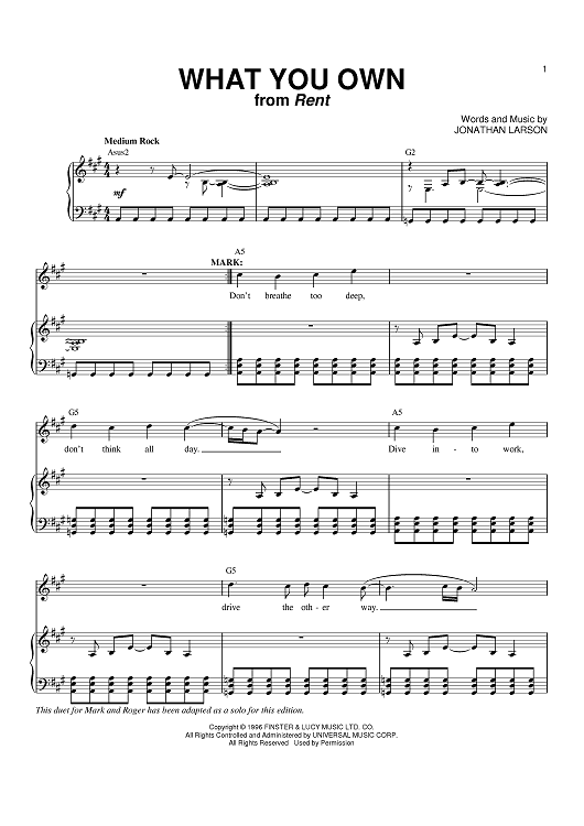 Digital Sheet Music for What You Own by Jonathan Larson scored for Piano/Vocal/Chords; id:402914