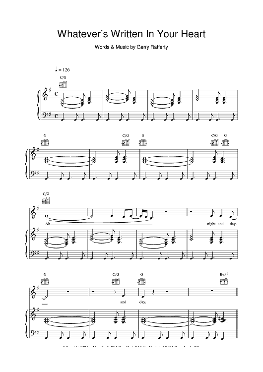 Digital Sheet Music for Whatever's Written In Your Heart by Gerry Rafferty scored for Piano/Vocal/Chords; id:379705
