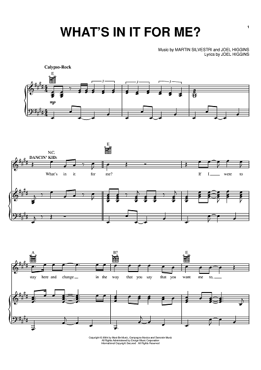 Digital Sheet Music for What's In It For Me? by Joel Higgins, Martin Silvestri scored for Piano/Vocal/Chords; id:386496