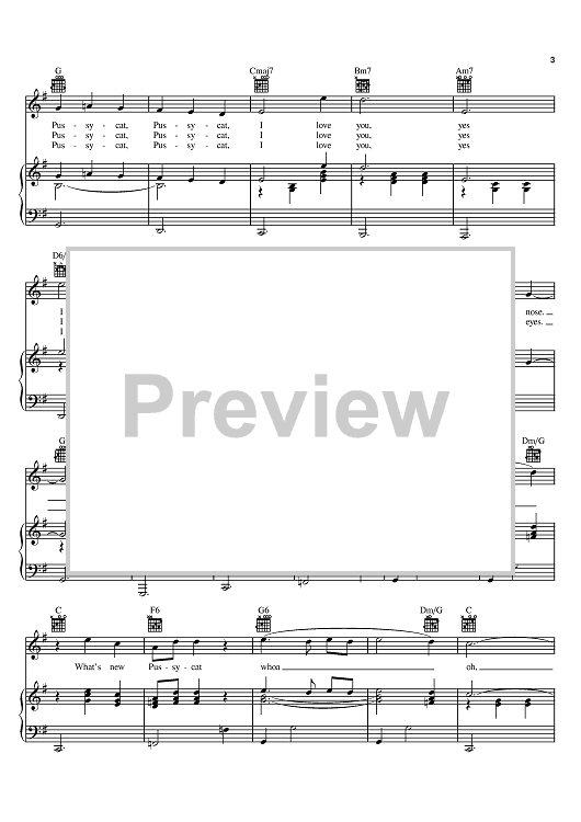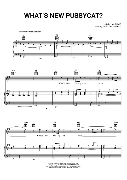 Digital Sheet Music for What's New Pussycat? by Hal David, Burt Bacharach, Tom Jones scored for Piano/Vocal/Chords; id:375006