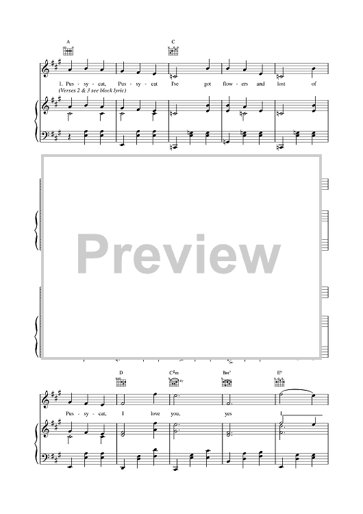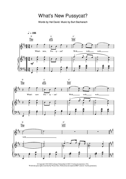 Digital Sheet Music for What's New Pussycat by Tom Jones, Paul Anka scored for Piano/Vocal/Chords; id:379624
