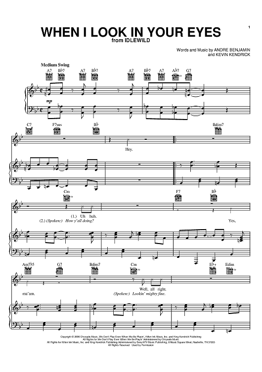 Digital Sheet Music for When I Look In Your Eyes by André 3000, OutKast, Kevin Kendricks scored for Piano/Vocal/Chords; id:396070
