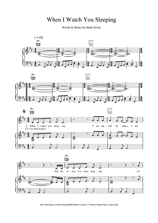 Digital Sheet Music for When I Watch You Sleeping by Eddi Reader scored for Piano/Vocal/Chords; id:375924