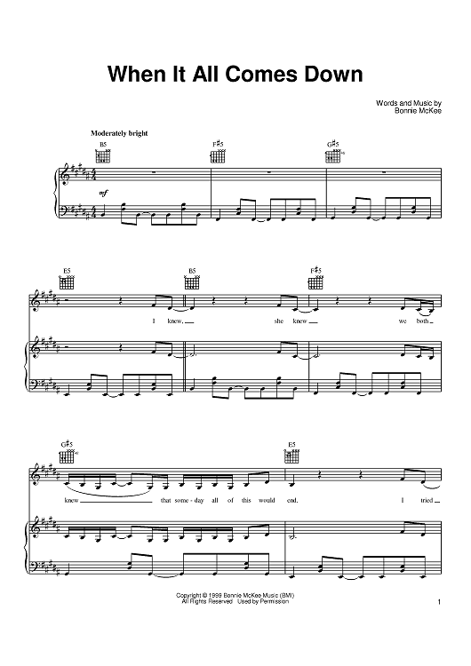 Digital Sheet Music for When It All Comes Down by Bonnie McKee scored for Piano/Vocal/Chords; id:381175