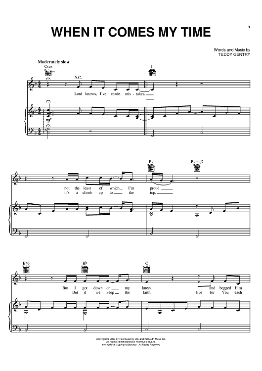 Digital Sheet Music for When It Comes My Time by Teddy Gentry, Alabama scored for Piano/Vocal/Chords; id:401526