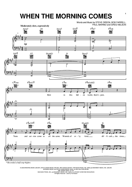 Digital Sheet Music for When The Morning Comes by Steve Green, Greg Nelson, Bob Farrell, Paul Marino scored for Piano/Vocal/Chords; id:384981