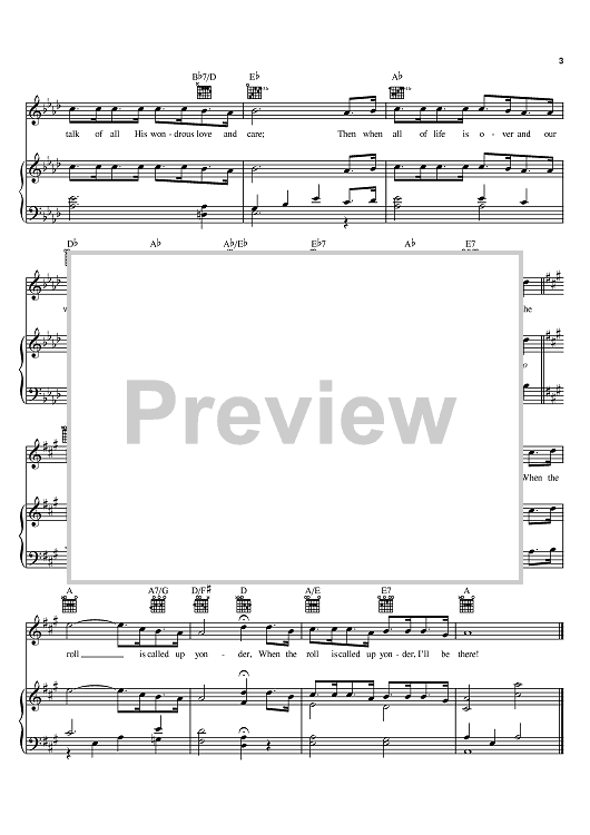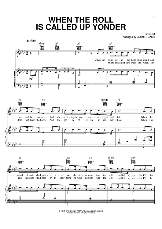 Digital Sheet Music for When The Roll Is Called Up Yonder by Johnny Cash, Traditional scored for Piano/Vocal/Chords; id:381202