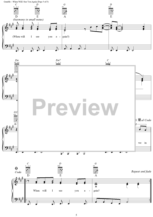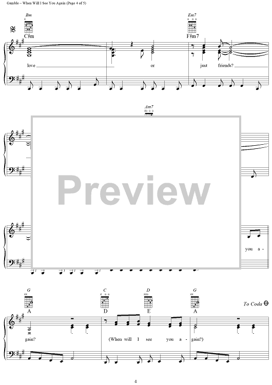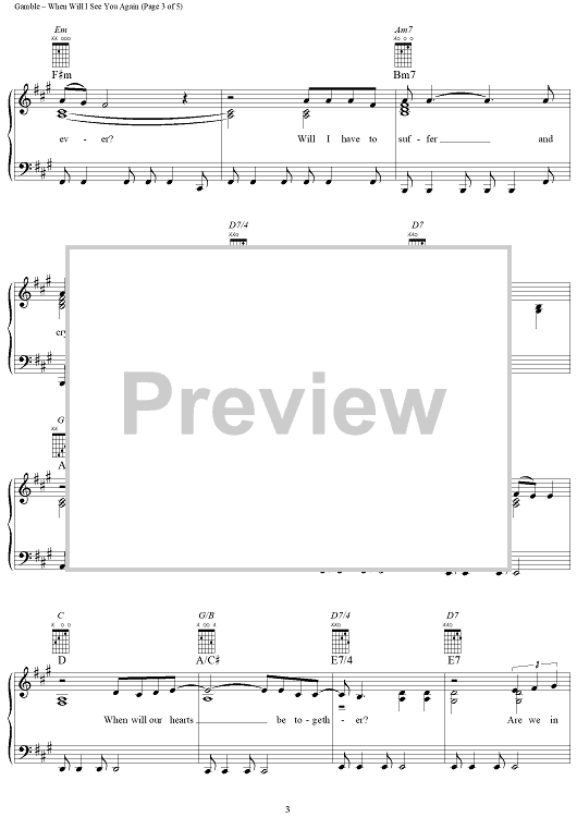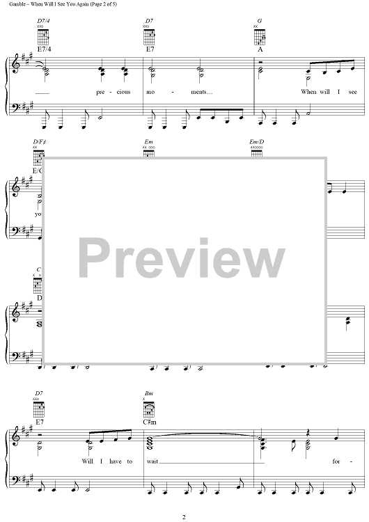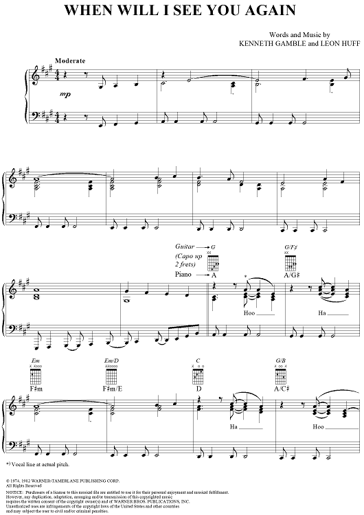 Digital Sheet Music for When Will I See You Again by Leon Huff, Kenneth Gamble, The Three Degrees scored for Piano/Vocal/Chords; id:269011
