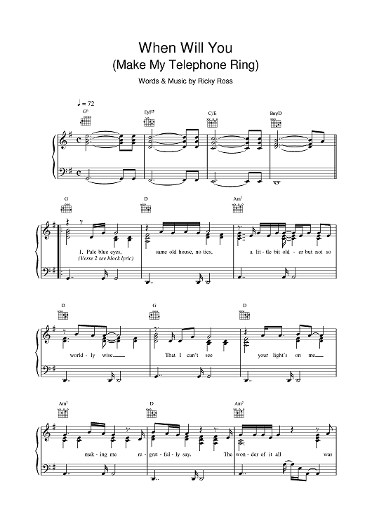 Digital Sheet Music for When Will You (Make My Telephone Ring) by Deacon Blue, R.ROSS scored for Piano/Vocal/Chords; id:379605