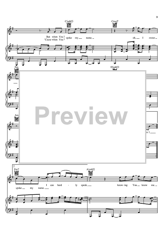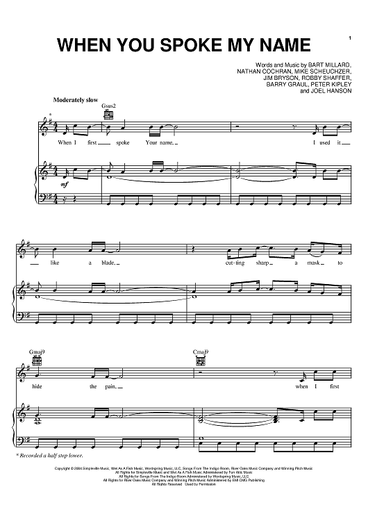 Digital Sheet Music for When You Spoke My Name by Joel Hanson, Pete Kipley, Jim Bryson, Nathan Cochran, Barry Graul, MercyMe, Bart Millard, Mike Scheuchzer, Robby Shaffer scored for Piano/Vocal/Chords; id:387783