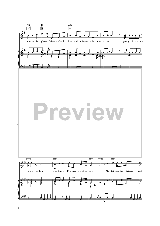 "When You're In Love With A Beautiful Woman" Sheet Music by Dr. Hook & The Medicine Show