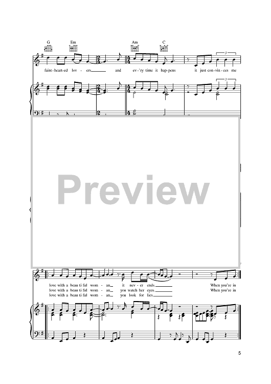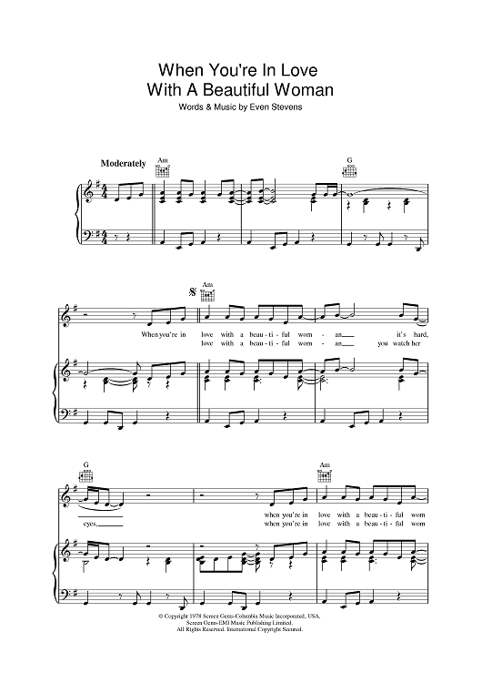 Digital Sheet Music for When You're In Love With A Beautiful Woman by Even Stevens, Dr. Hook & The Medicine Show scored for Piano/Vocal/Chords; id:398745