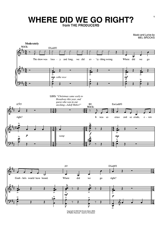 Digital Sheet Music for Where Did We Go Right? by Mel Brooks scored for Piano/Vocal/Chords; id:381618