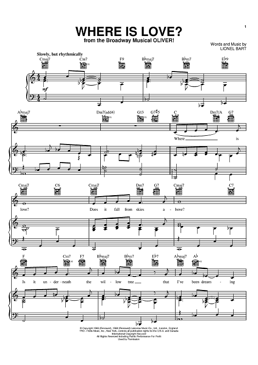 "Where Is Love?" Sheet Music by Lionel Bart