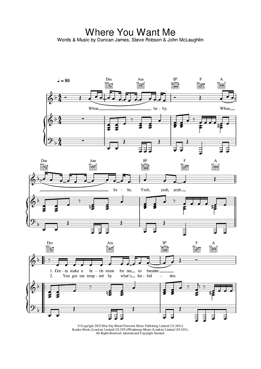 Digital Sheet Music for Where You Want Me by Blue scored for Piano/Vocal/Chords; id:378281