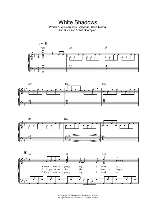 Digital Sheet Music for White Shadows by Chris Martin, Coldplay, Jonny Buckland, Guy Berryman scored for Piano/Vocal/Chords; id:385882