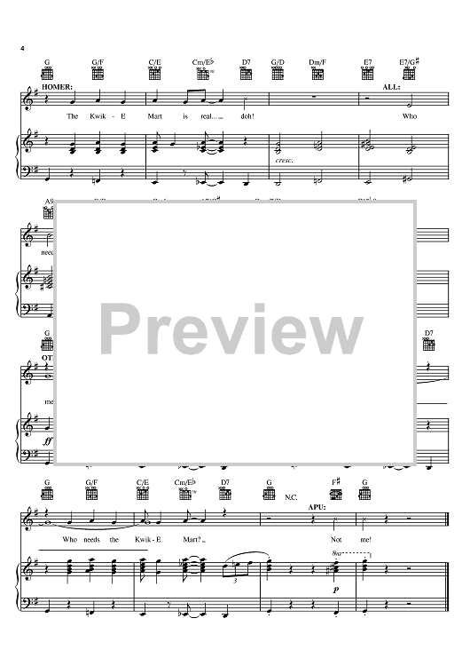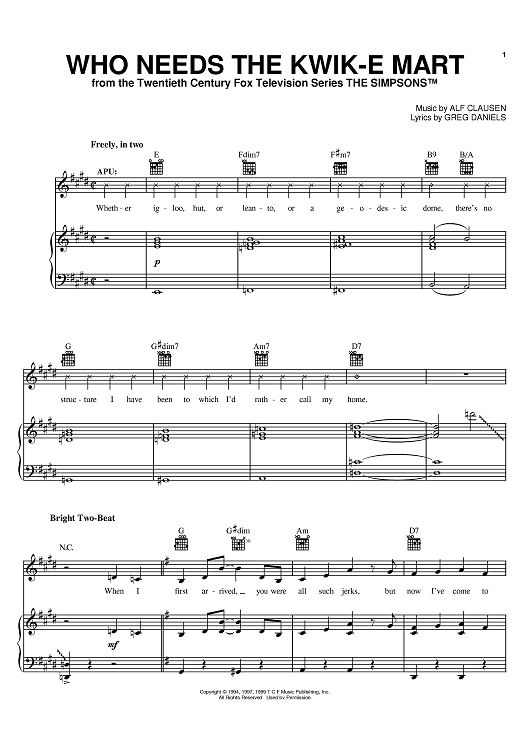 Digital Sheet Music for Who Needs The Kwik-E Mart by Alf Clausen, Greg Daniels scored for Piano/Vocal/Chords; id:394042