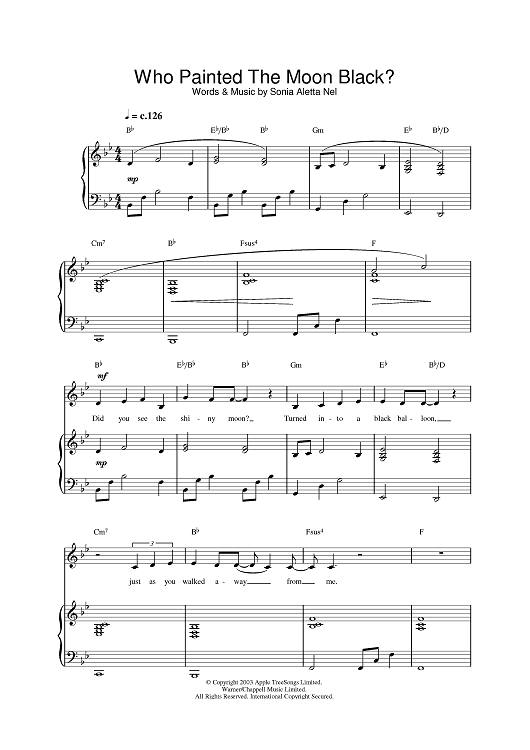 Digital Sheet Music for Who Painted The Moon Black? by Hayley Dee Westenra scored for Piano/Vocal/Chords; id:378450