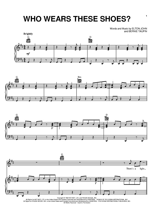 Digital Sheet Music for Who Wears These Shoes? by Elton John, Bernie Taupin scored for Piano/Vocal/Chords; id:392581