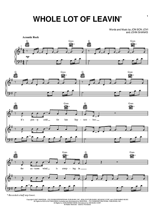 Digital Sheet Music for Whole Lot Of Leavin' by Bon Jovi, John Shanks, Jon Bon Jovi scored for Piano/Vocal/Chords; id:401755