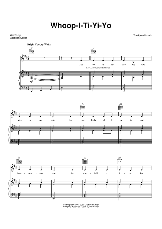 "Whoop-I-Ti-Yi-Yo" Sheet Music by Garrison Keillor