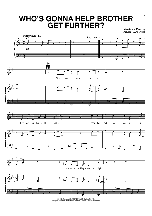Digital Sheet Music for Who's Gonna Help Brother Get Further? by Elvis Costello, Allen Toussaint scored for Piano/Vocal/Chords; id:394731
