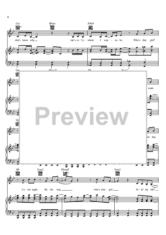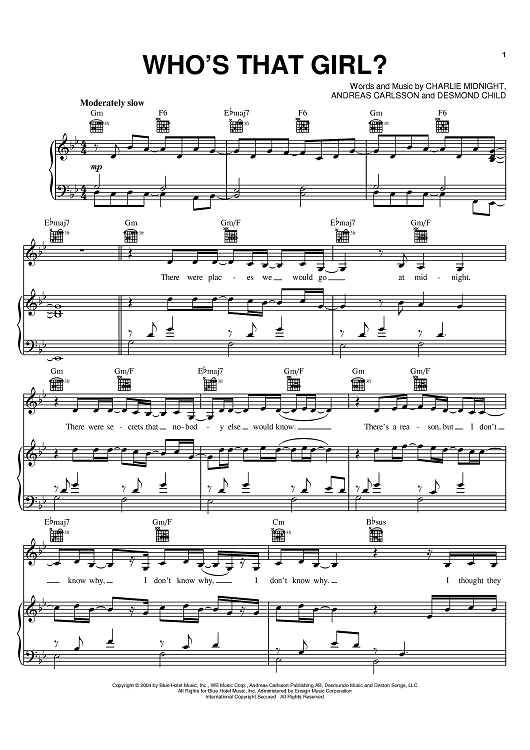 Digital Sheet Music for Who's That Girl? by Desmond Child, Andreas Carlsson, Charlie Midnight, Hilary Duff scored for Piano/Vocal/Chords; id:383194
